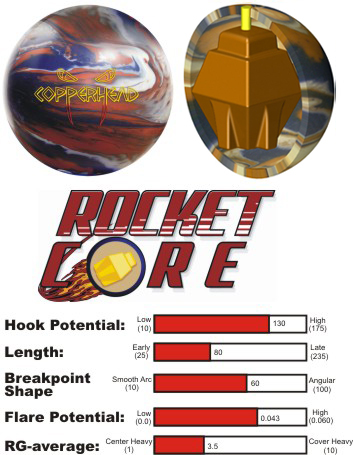 Low RG Rocket Core: The Copperhead uses Brunswick’s Multi-Sided Rocket Core System which provides a low RG to help the ball rev-up sooner and create tremendous mid-lane recovery.