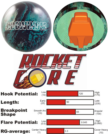 The Sidewinder upgrades the performance of the BVP Ambush by using Brunswick’s new lower RG Rocket core system. The lower RG of the Rocket core helps the Sidewinder get into an earlier roll which helps create more mid-lane recovery on today’s high viscosity oils and hard synthetic lane surfaces.