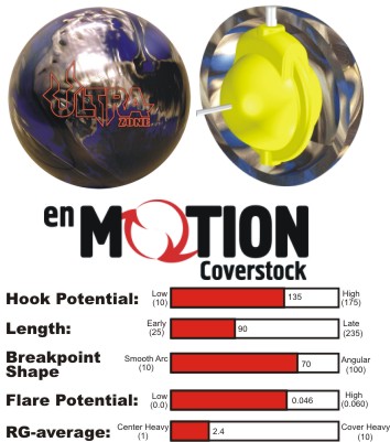 The Ultra Zone uses a Solid / Pearl Hybrid version of the EnMotion coverstock. EnMotion combines the best elements from our PowerKoil, Activator and N’Control coverstock systems to create good length combined with excellent mid-lane recovery and strong back-end hooking action. The Ultra Zone unites EnMotion coverstock with the ultra-low-RG updated Phantom core. Ultra-low-RG’s are known for strong mid-lane recovery moves and their controllable back-end hooking action, Brunswick has created an "mid-lane recovery" counterpart to the Twisted Fury that will match-up better on lane patterns that create over/under reaction problems for skid/snap balls.
